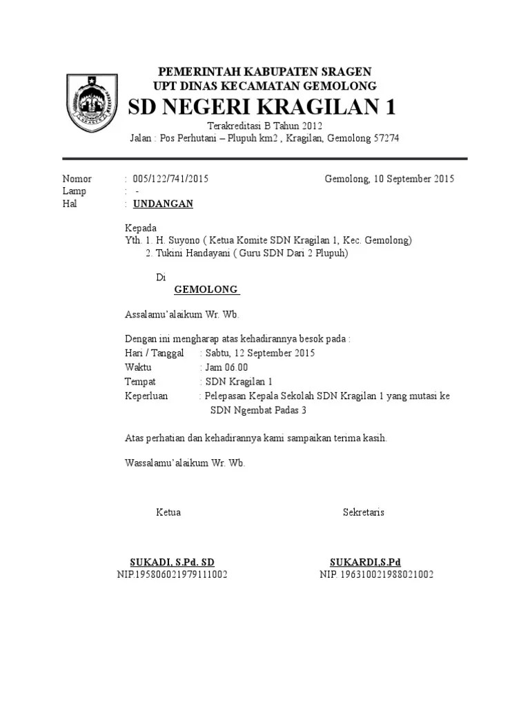 Surat resmi perpisahan sekolah sd rasmi l. Sambutan ketua komite sekolah penampilan tari kreasi 6. Contoh surat undangan dinas perpisahan. Surat undangan biasanya akan dibuat secara tertulis di atas kertas. Untuk para guru yang mau membuat surat undangan perpisahan sekolah, semoga bermanfaat, .