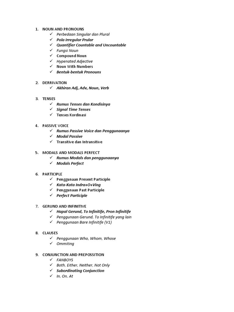 Bagaimana penggunaannya dalam sebuah kalimat? Yakni, kata bantu yang berperan untuk . Kini kita akan mempelajari tentang conjunction. Ada banyak kalimat menggunakan beberapa jenis conjunction: "in order that", "in order to", dan "so that" merupakan conjunction atau kata hubung.